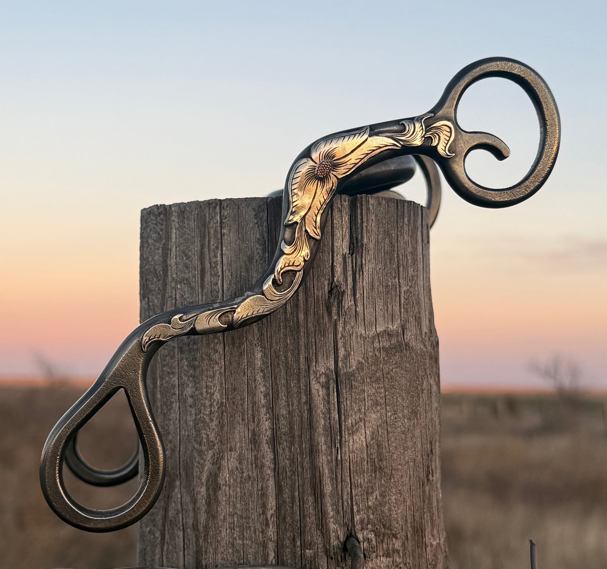 This Klapper influenced bit has the 696 style shanks with the traditional Klapper style 27 mouthpiece. It sports beautiful silver floral and flower overlay